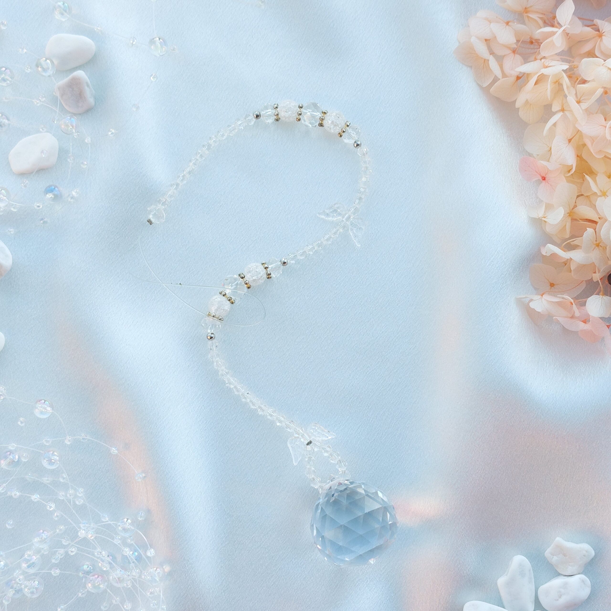 Kaunis keskmise suurusega Feng Shui päikesepüüdja mäekristallide ja inglitiibadega.