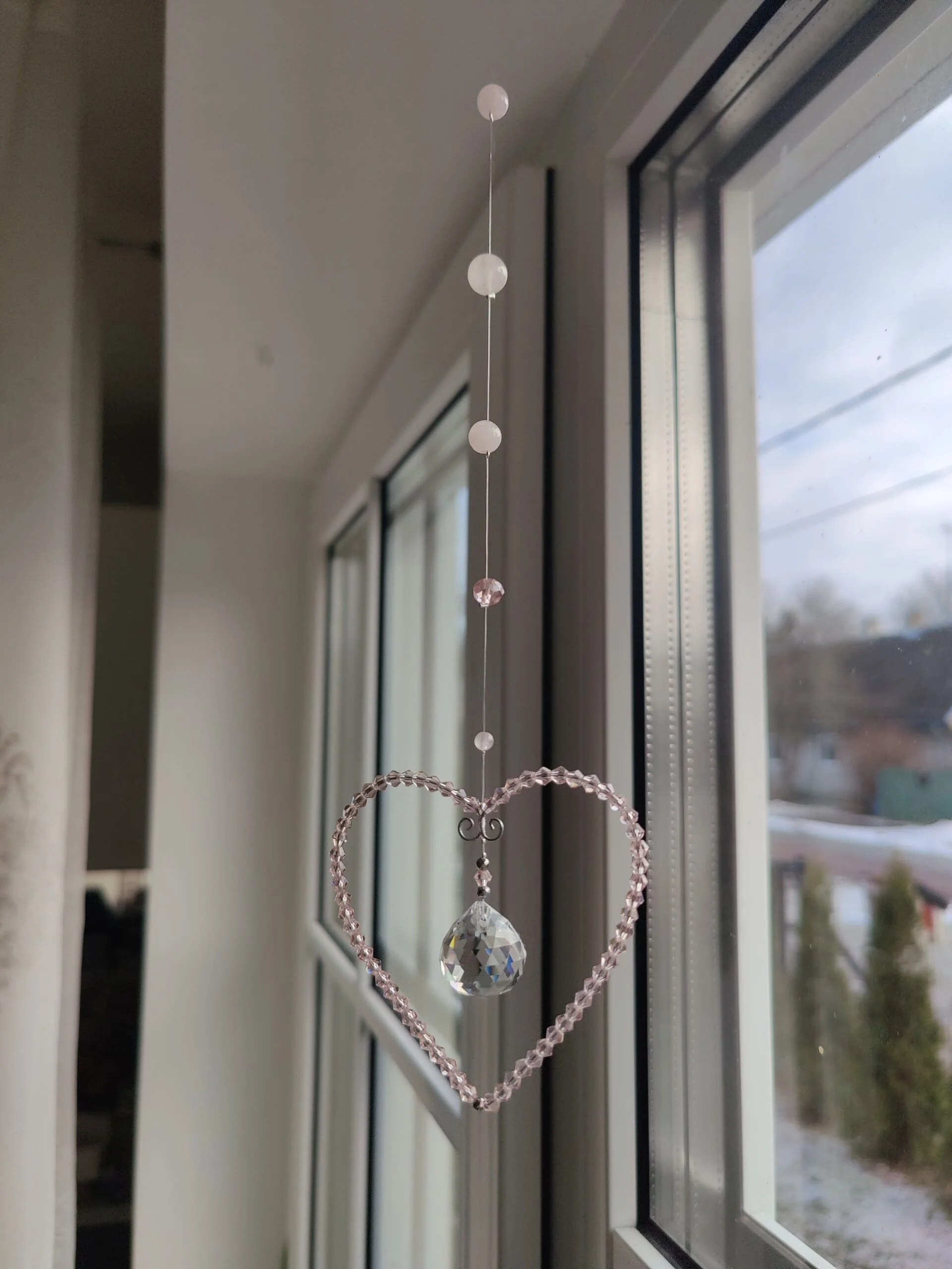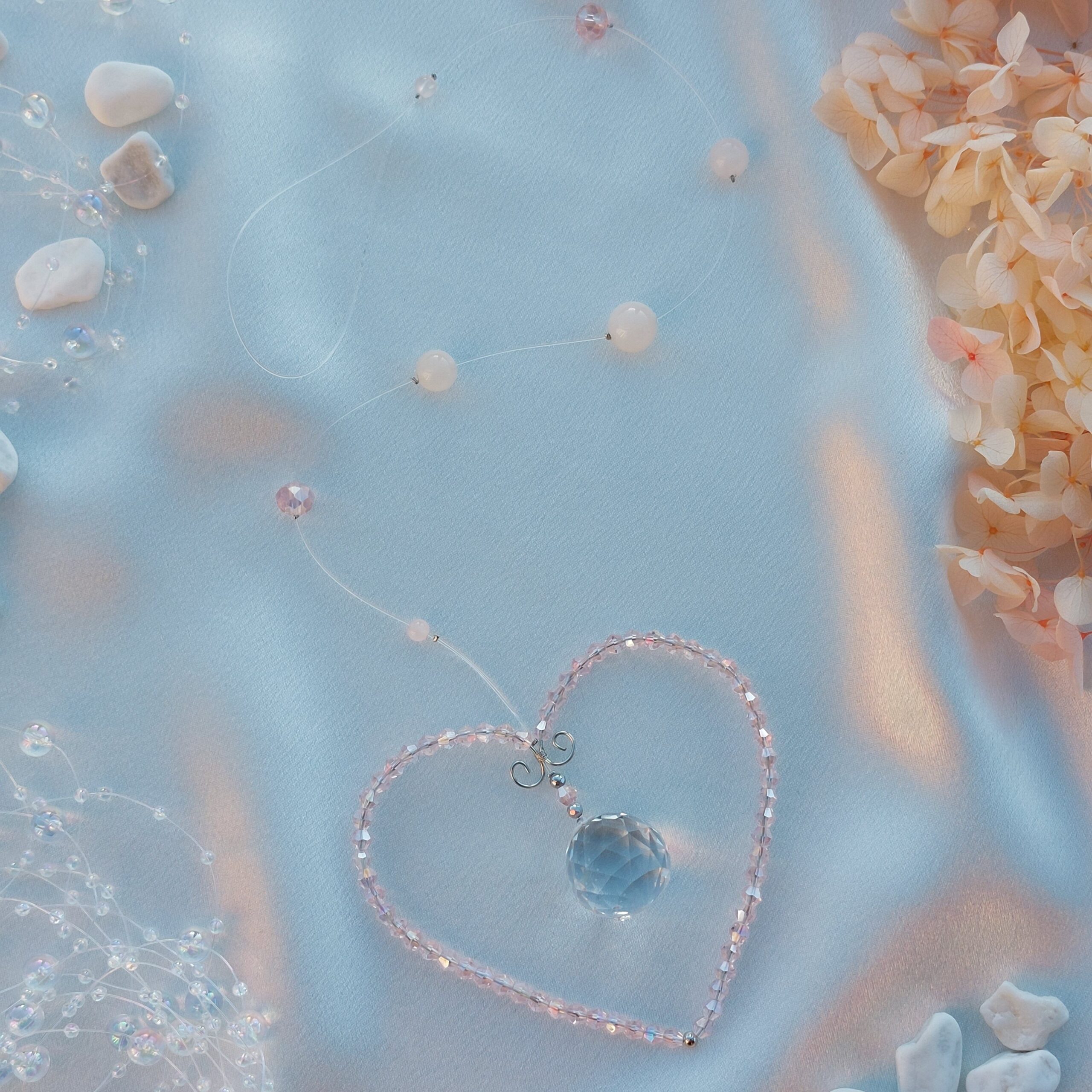 Kaunis Feng Shui päikesepüüdja südamekujulises pärlitest raamis.